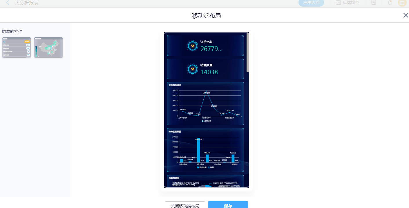 - 移动布局只影响报表在移动端的展示,不影响报表在PC端的展示。