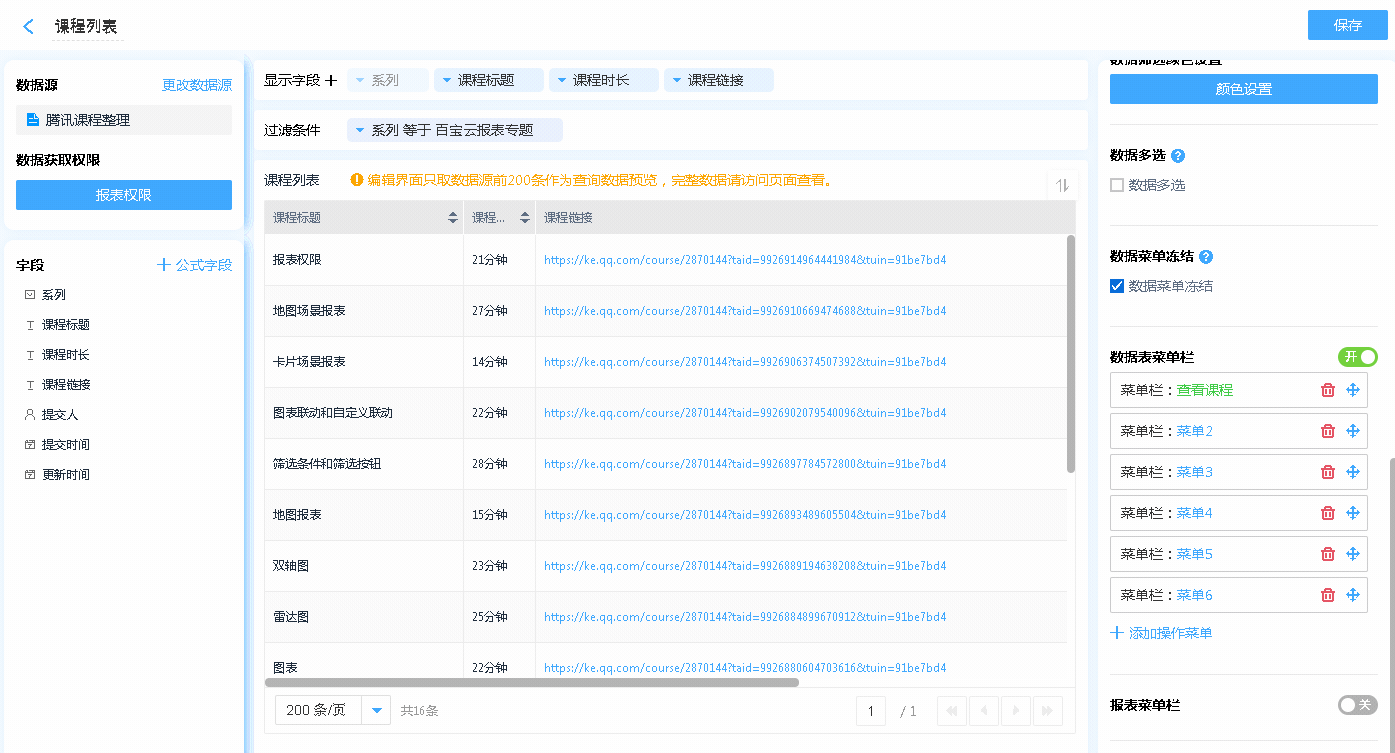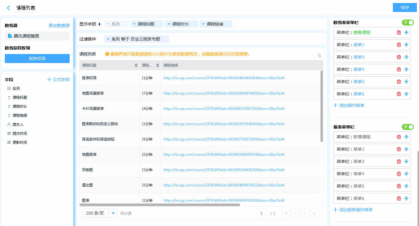 最多支持6个报表菜单栏,每个菜单栏均可单独进行配置。