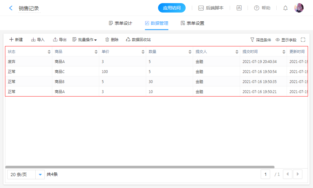 点击右侧面板的“数据来源”,选择需要关联的表单数据。