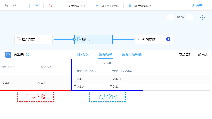 创建“修改数据”动作节点,将“输出表”的数据更新至其他表单。